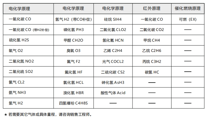 測量類型:電化學(xué)氣體傳感器、催化燃燒可燃氣體傳感器、紅外光學(xué)原理