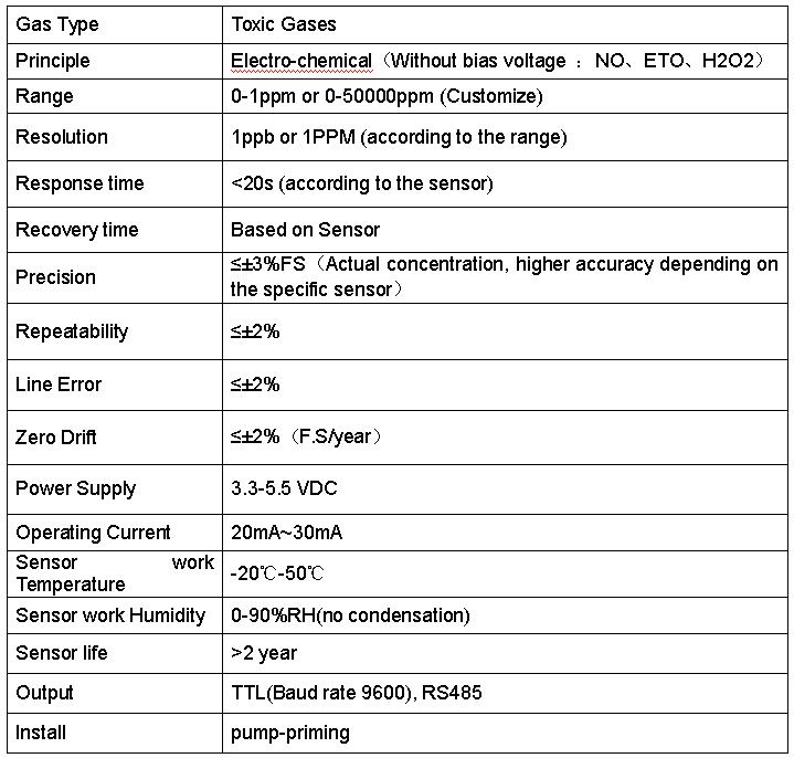 The high-precision & low-temperature drift and multi-point calibration technology ensure the module measurement accuracy and linearity.The Module is designed with the digital output. It’s unnecessary to re-calibrate, if the user make the module for binary development or direct use, which will reduce the development and application time cycle. There are two application interfaces: Diffusion, pump-priming.